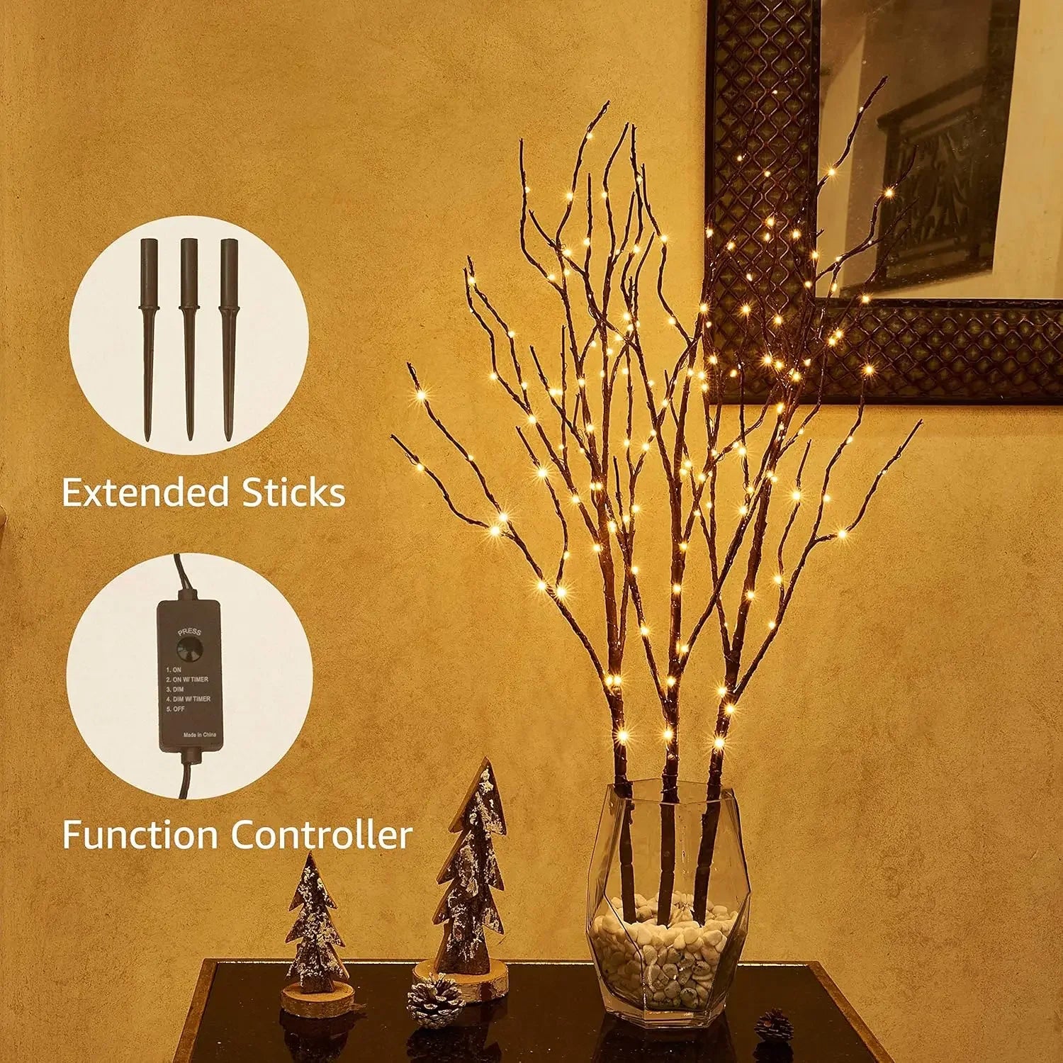 - Includes two sets of lighted willow branches, each with 150 warm-white LEDs for a cozy, magical glow — plug-in design for quick, continuous illumination.